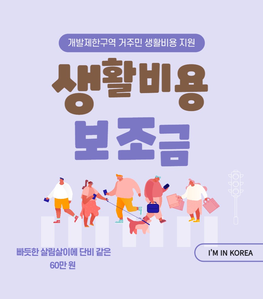 생활이 어려운 개발제한구역 주민분들께 생활비용보조금을 현금으로 지원해 빠듯한 살림에 보탬이 되도록 한다는 취지에 복지서비스이다.